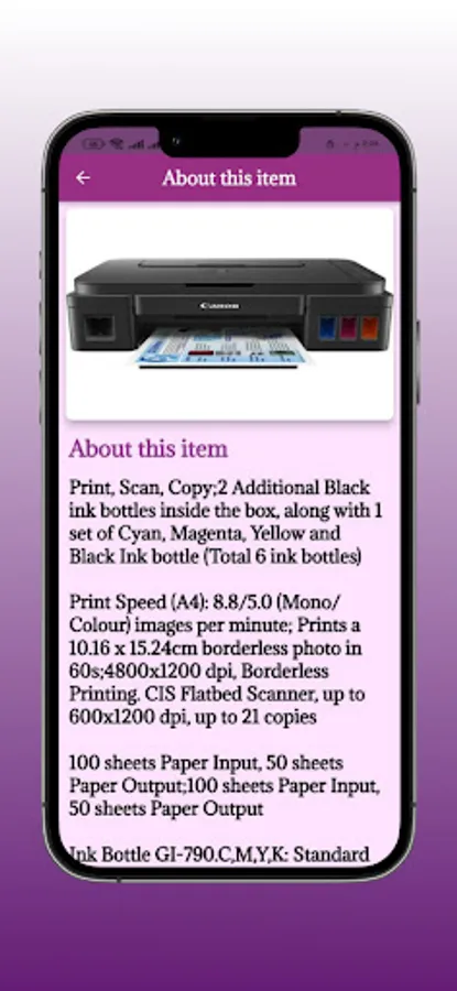 An app canon pixma g3000 that gives you information about canon pixma g3000