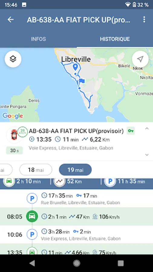 Analysis of the following indicators: Positions on the map, journeys made, distances traveled, speeds...