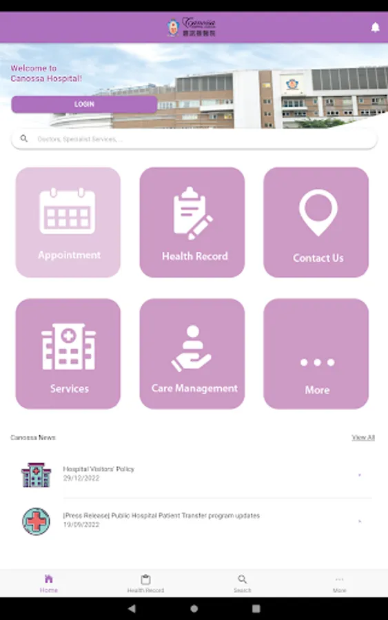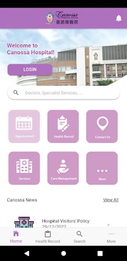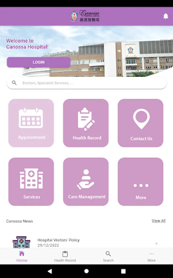 The Canossa Hospital (Caritas) mobile application is an integrated information platform to facilitate patients to manage healthcare more effectively.