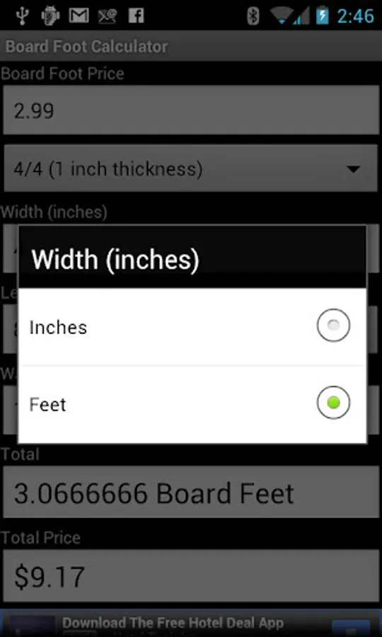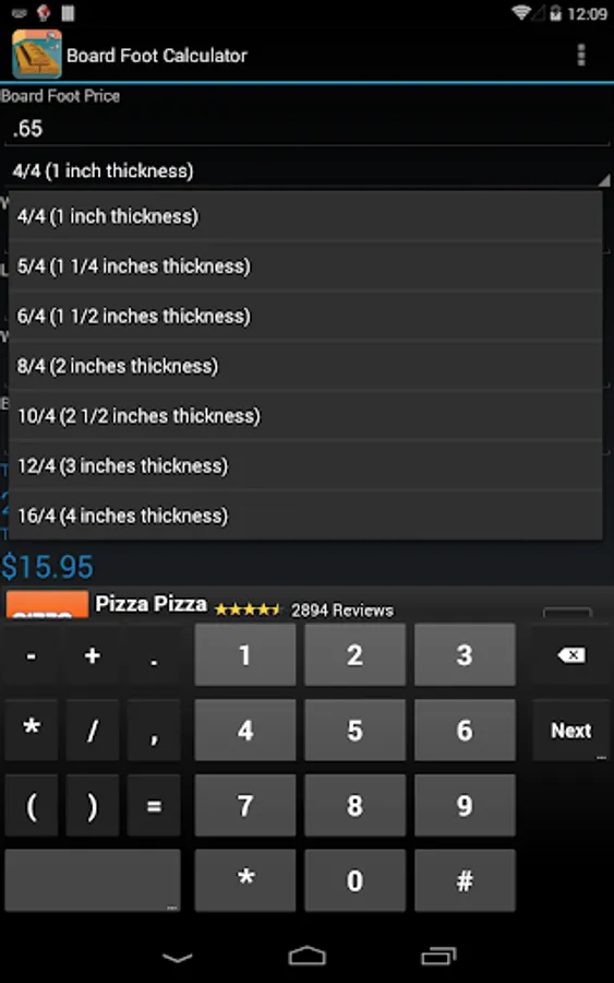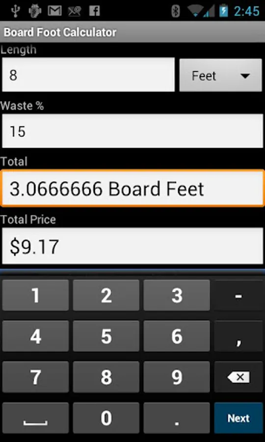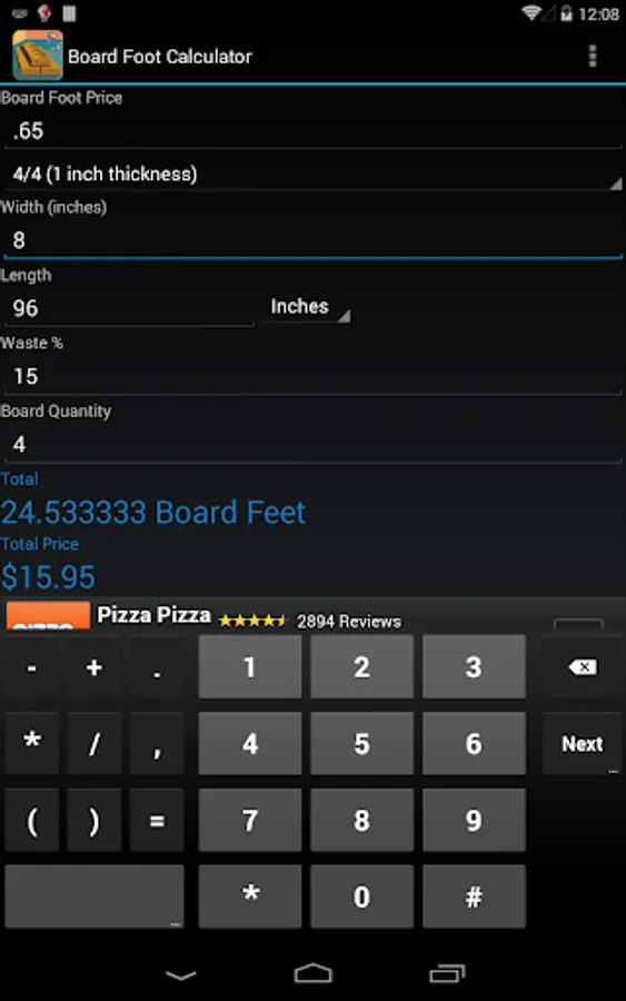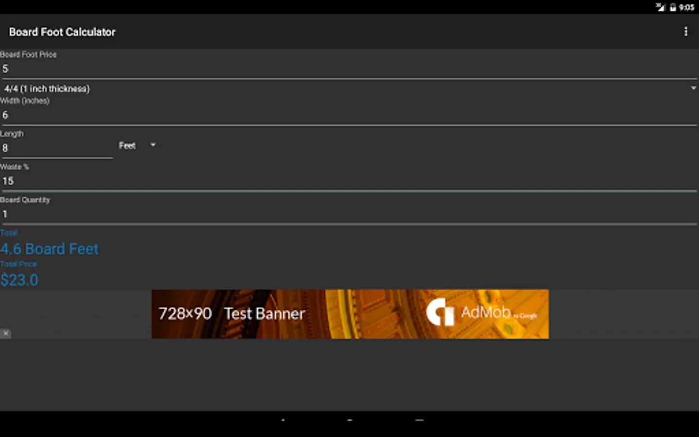 The Board Foot Easy Calculator is a simple, and easy to use, application for calculating board feet.