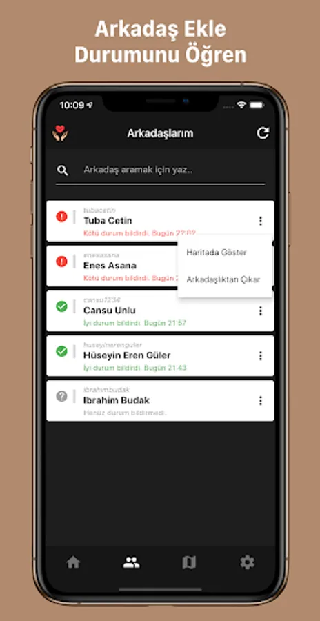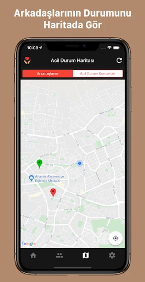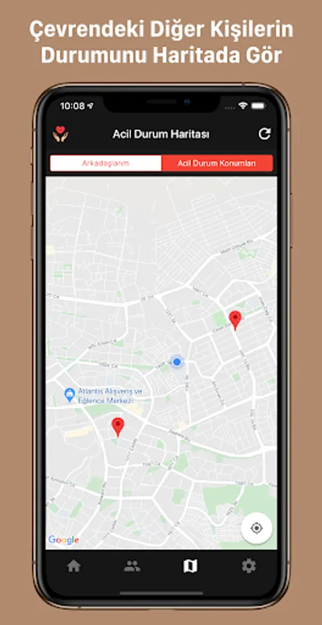 On the emergency map, you can see the latest locations of your friends whom you have mutually added. In addition, you can see the locations of other people who have 'reported bad condition' around 150 km. Again, for security reasons, you will only be able to see other people's locations, you will not know who these locations belong to.