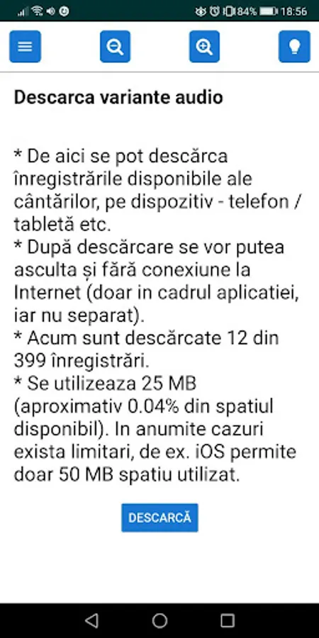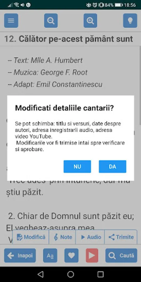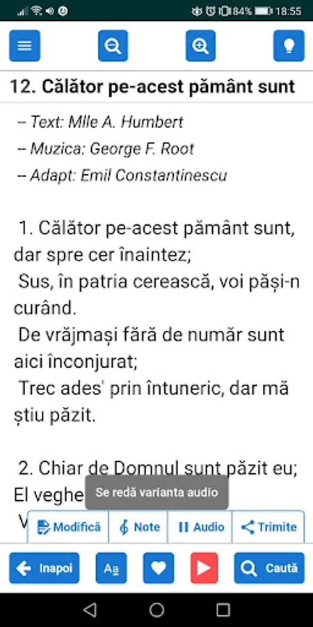 The application contains the songs from the book of songs (the 400 and a few others) from the meetings of the brothers (for example, the Christian Assembly from 40-42 Dr. Felix Street, Bucharest).