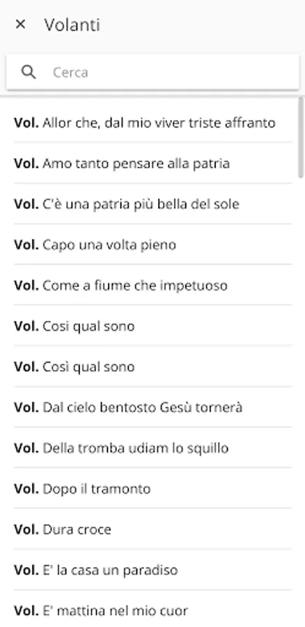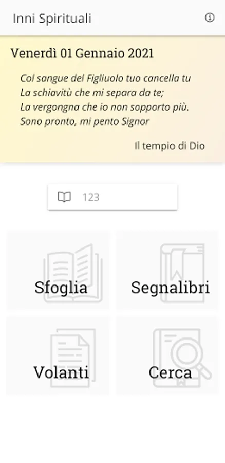 Application that collects in digital form all the 388 songs of the collection of hymns spiritual + 46 children and various canticles flying