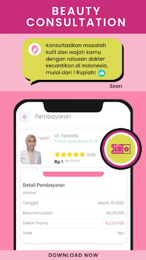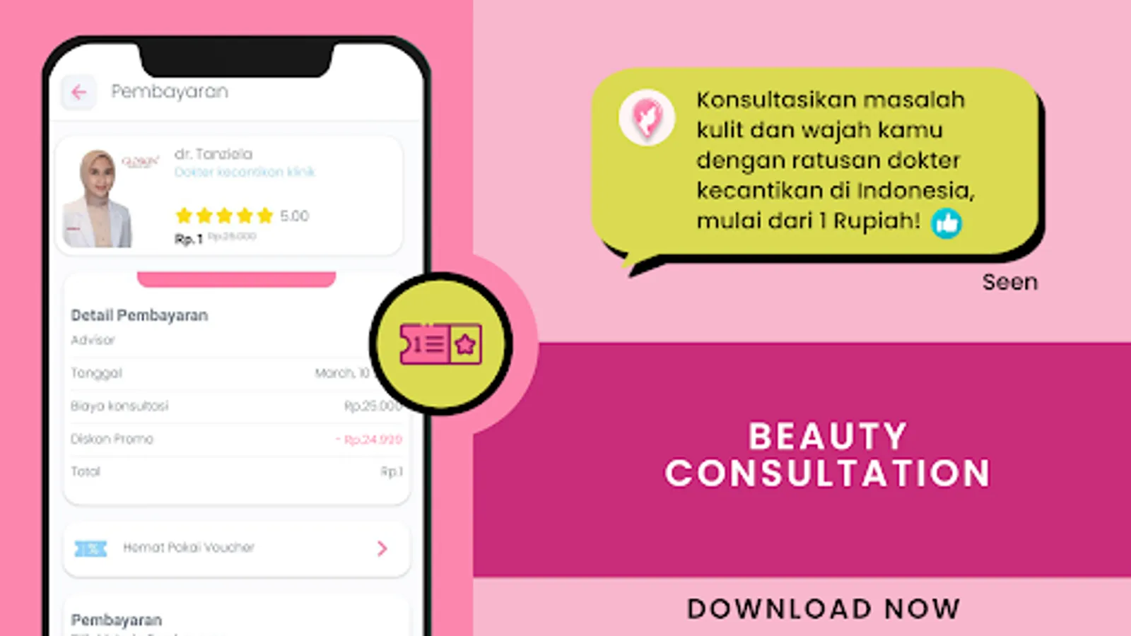 • Cheap beauty consultation, starting from Rp. 1 (really 1 rupiah) with hundreds of experienced beauty doctors.