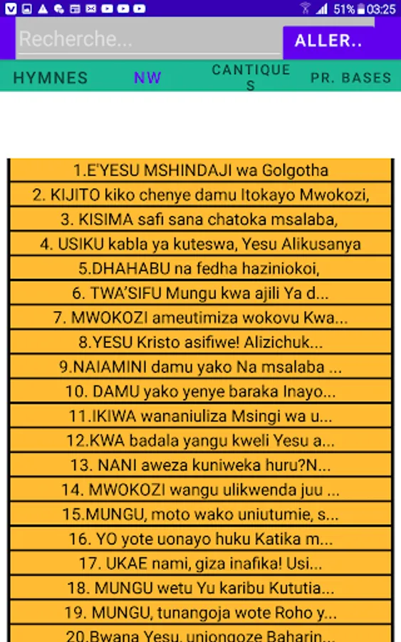 1. Nyimbo za wokovu (WK), puis les Cantiques sélectionnés parmi les: