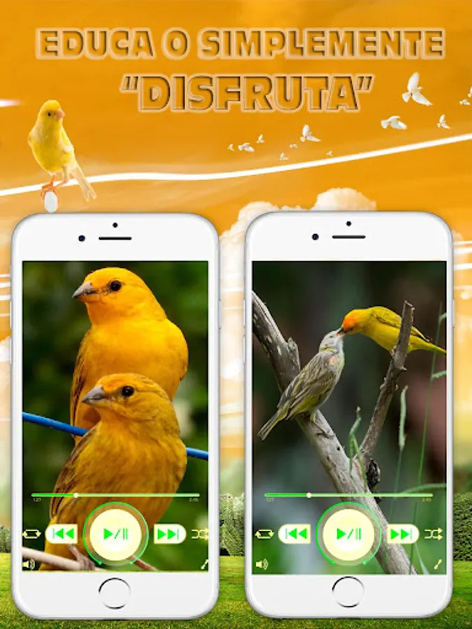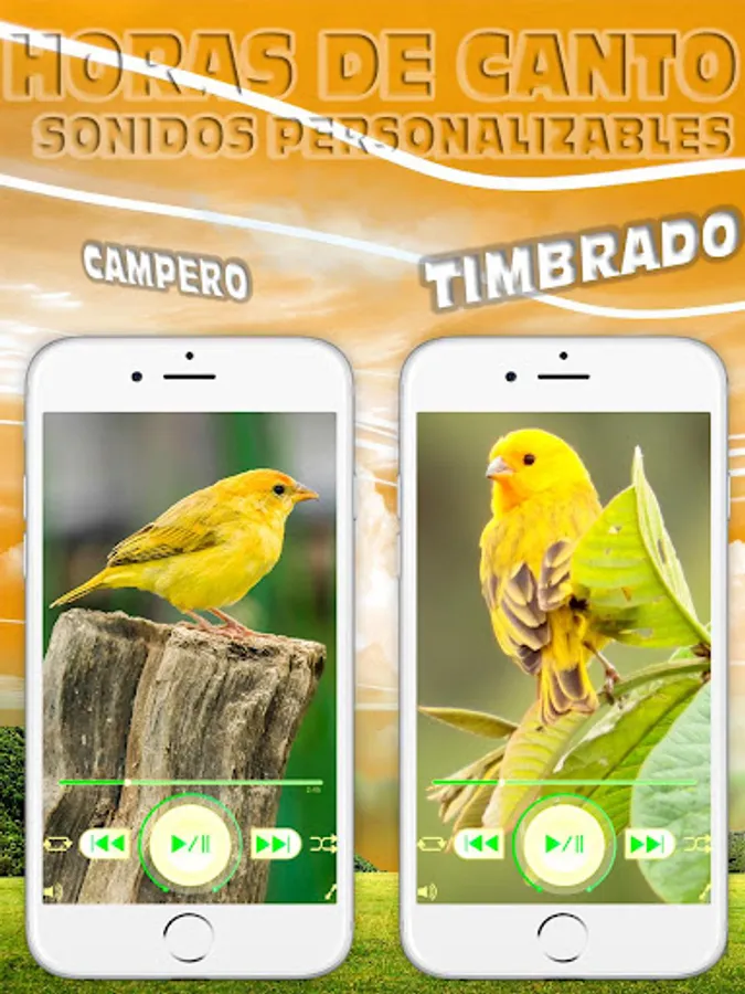 Listen and enjoy the sounds of canaries. Since it has a wide variety of sounds of the species (Spanish ringing, roller, Malinois, American, humpbacked, curly, tufted, etc.), in which you can customize and program as ringtones, sounds for alarms, messages or notifications, as well as more extensive tones to train, educate or teach, through sounds of master canaries, in a simple way on your phone, tablet or other mobile devices.