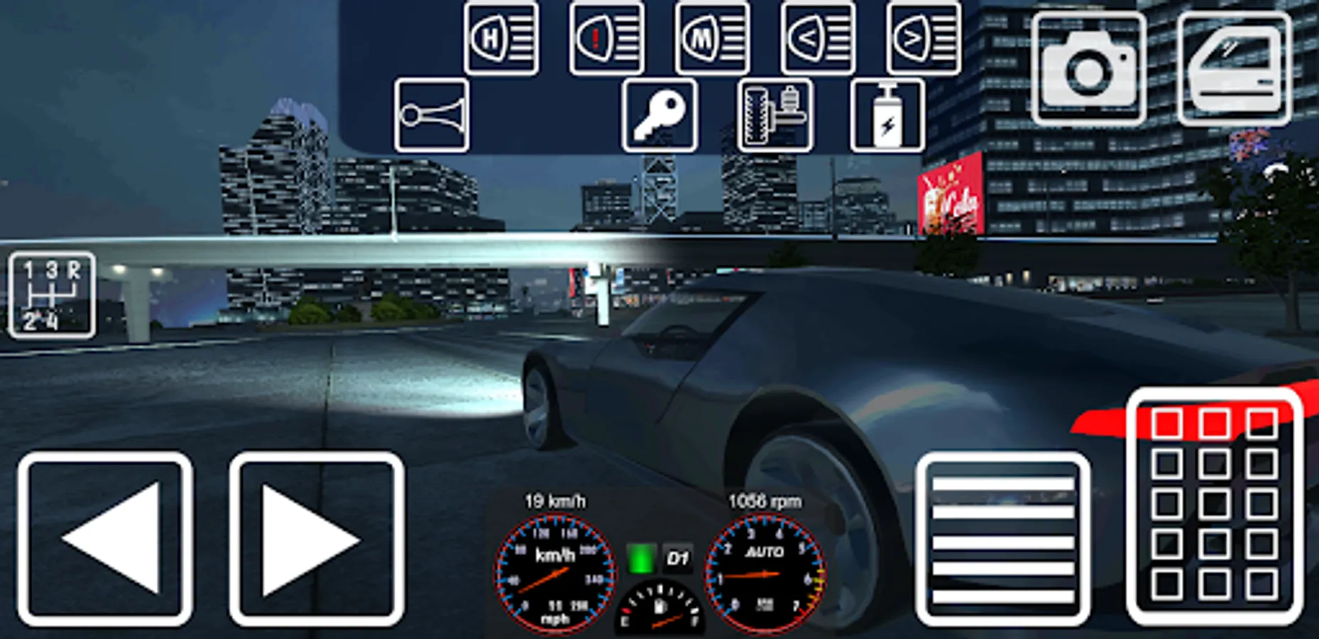 You are driving a sports car in the city at night. It feels like you are driving a real car. The cars have camera switching features, horn sounds, nitro feature for sports cars, headlights and nitro glycerine to speed up the car.