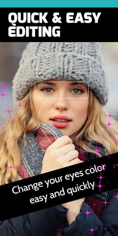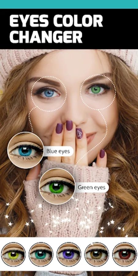 Eye Color camera is a new way to enjoy taking photos, actually it offers you to garnish pictures with a large variety of artistic piercings stickers, this operative photo editor is completely free and connection is not required to work with , make sure after you download Eye color app to pick from your gallery images your favorite photo or capture a fresh one , after that add your favorite eye color effect on the chosen picture, it’s admittedly that you will crush on love with your new look picture , here the choice is yours you can share the edited picture with eye color effect either with friends and relatives via social media or on your stories and feeds.