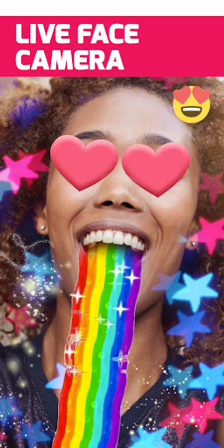 live face camera free cute & funny motion sticker has an accurate emoji camera with a large variety emojis to add such as: Heart , Crown , Finger, Waving hand emojis , several faces emojis like Smiling face emoji , smiling face emoji with halo , Winking face , Relieved face , otherwise this ultimate live face camera photo editor offers a cool candy face tool and an incredible beauty camera to get the perfect face picture.