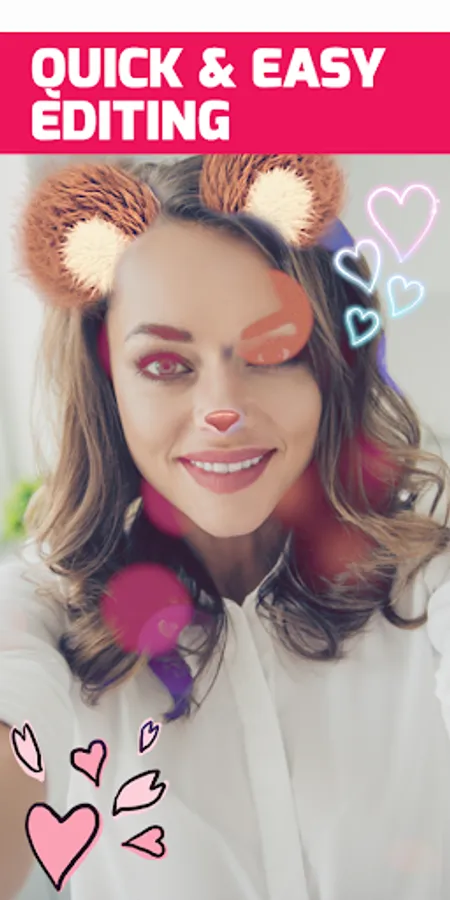 You feel bored and completely unhappy about your style of picture and you are looking seriously for some hacks and tricks to make your photo look captivating and stylish , we advise you to use Live Face Camera Free that enables you to garnish your pictures with a fantastic collection of catchy stickers such as : Lovely Heart stickers , Colorful Flower Crown stickers, also Live Face camera free cute & funny motion sticker includes a wide range of adorable stickers like cute cat face camera ,cool dog camera , funny rabbit & bunnies stickers , panda face stickers that surely allows to make your selfie pictures look stunning!, otherwise this interesting photo editor includes a lot of cool motion stickers .