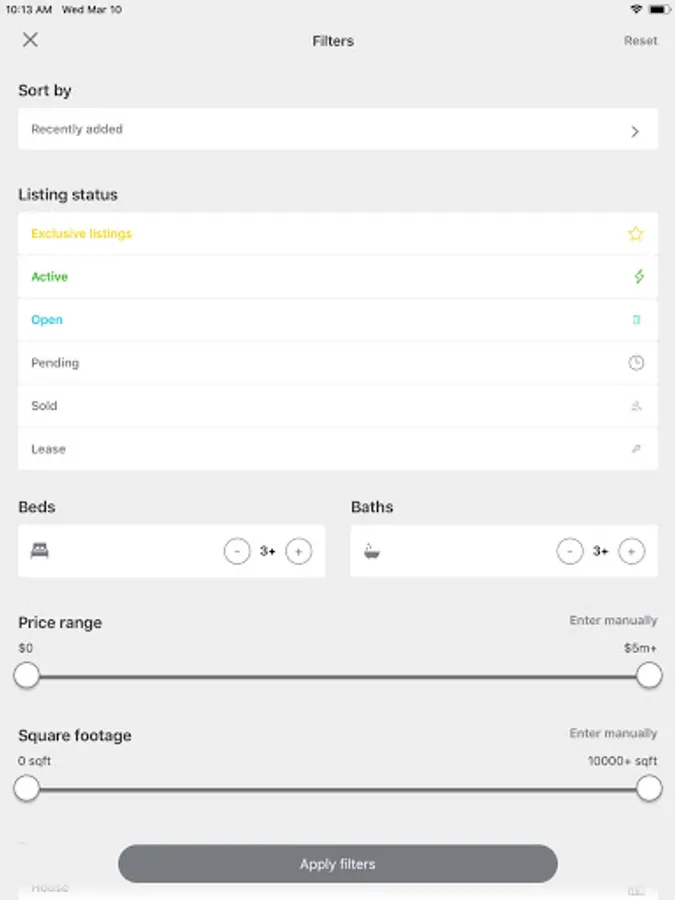 • Refine your search by price, beds, baths, lot size and square footage and more