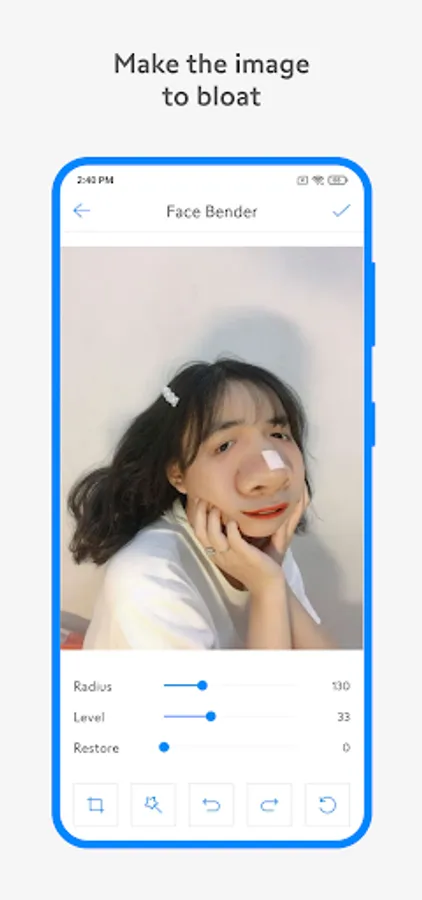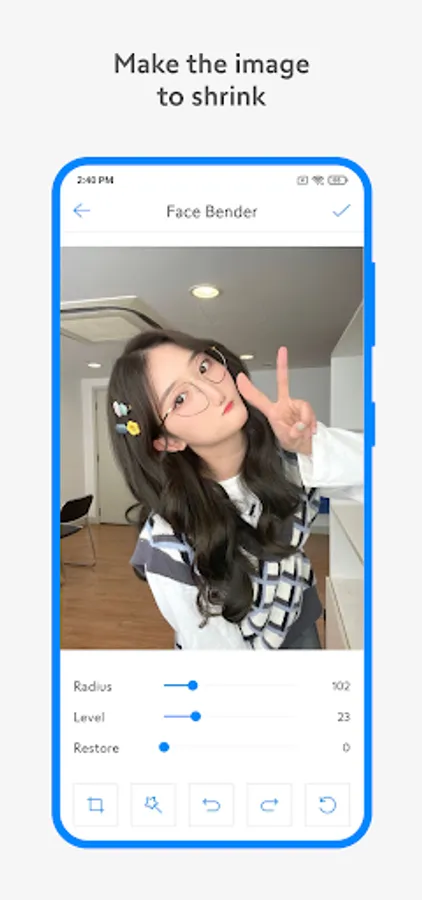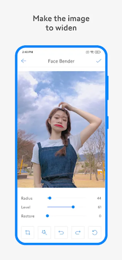 - All warp distortion photo effects as widen, bloat, bulge, shrink, pinch.