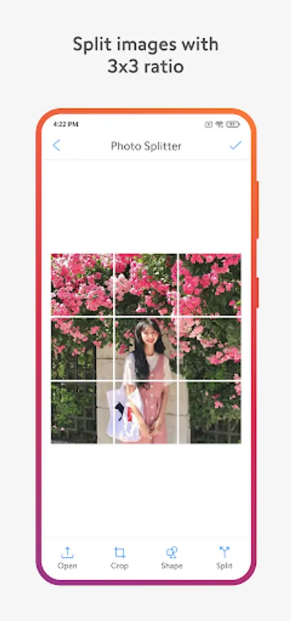 Easy to slice any picture into a 1x1, 2x2, 2x3, 3x2, 3x3, 3x4, 4x3 or 4x4 grid while keeping it in high resolution. Then you can post the split images to Facebook, Instagram and other social media to show it as one big photo on your profile. Enhance your profile by giving a professional look.