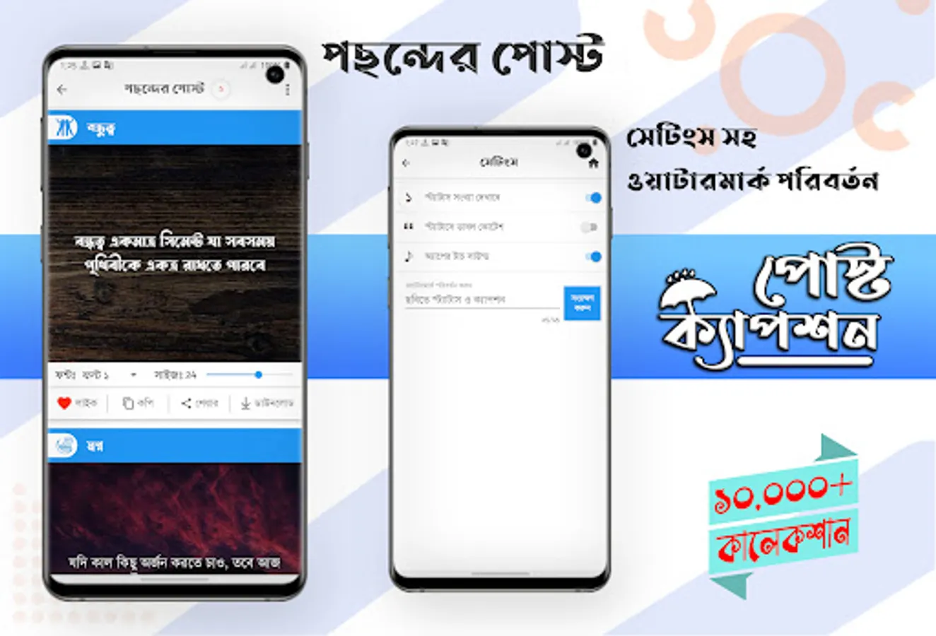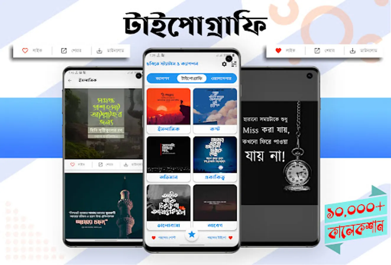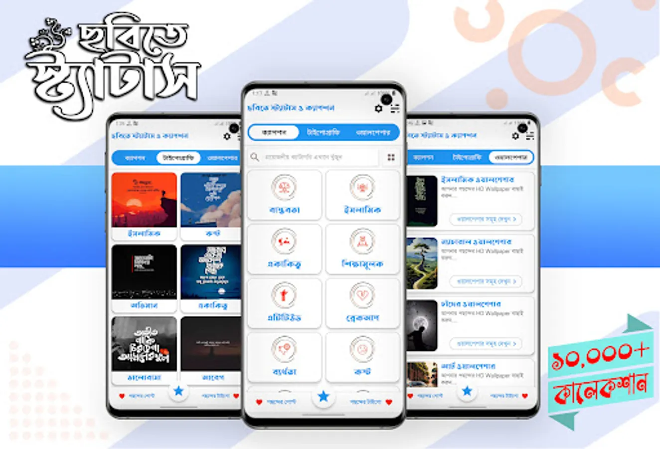 পঞ্চাশ এর উপর বাছাইকৃত স্ট্যাটাস ক্যাটাগরি যেমন- মন খারাপ, ভালোবাসা, আবেগী, এটিটিউড, মোটিভিশনাল, রোমান্টিক, ইসলামিক, জন্মদিন, একাকিত্ব, শিক্ষামূলক, দুঃখ কষ্ট, পরিবার, বন্ধু, নারী, বয়ফ্রেন্ড, বাবা-মা, বিশ্বাস, পরিশ্রম ইত্যাদি! এবং সাথে টাইপোগ্রাফি পোস্ট এবং ওয়ালপেয়ার সহ থাকছে আরো অনেক কিছু।