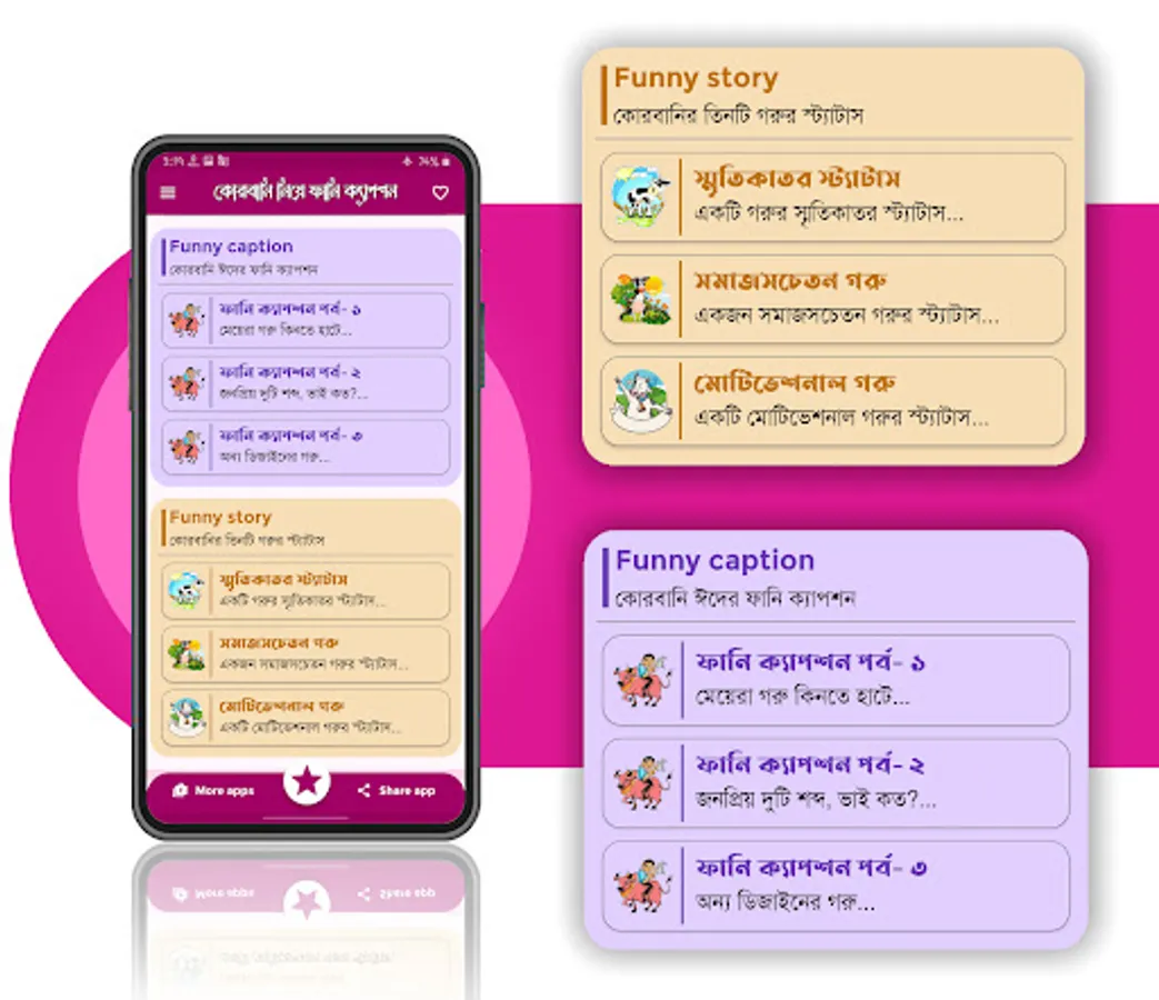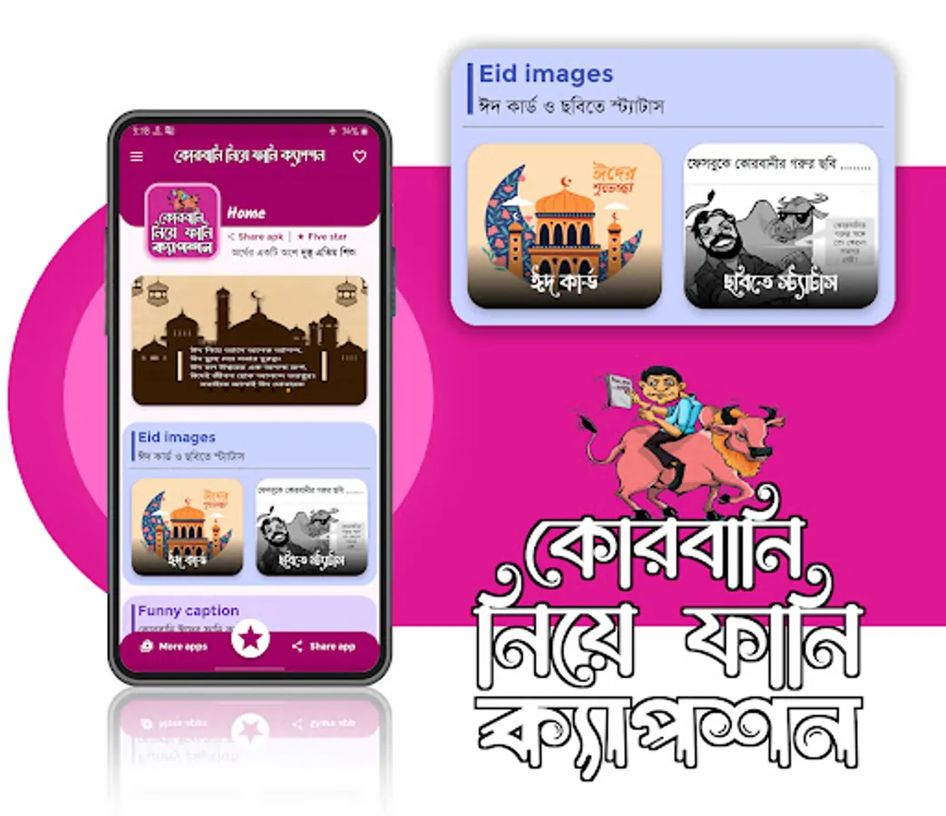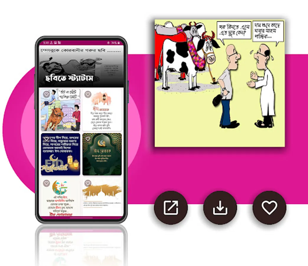 তো আরা দেরি কেন? এখনি আপনার মোবাইলে ইনস্টল করে নিন আমাদের এই ঈদ মোবারক পিক মজার পোস্ট আর ক্যাপশন নিয়ে ফানি স্ট্যাটাস ছবিসহ কোরবানি ঈদের সফটওয়্যার টি।