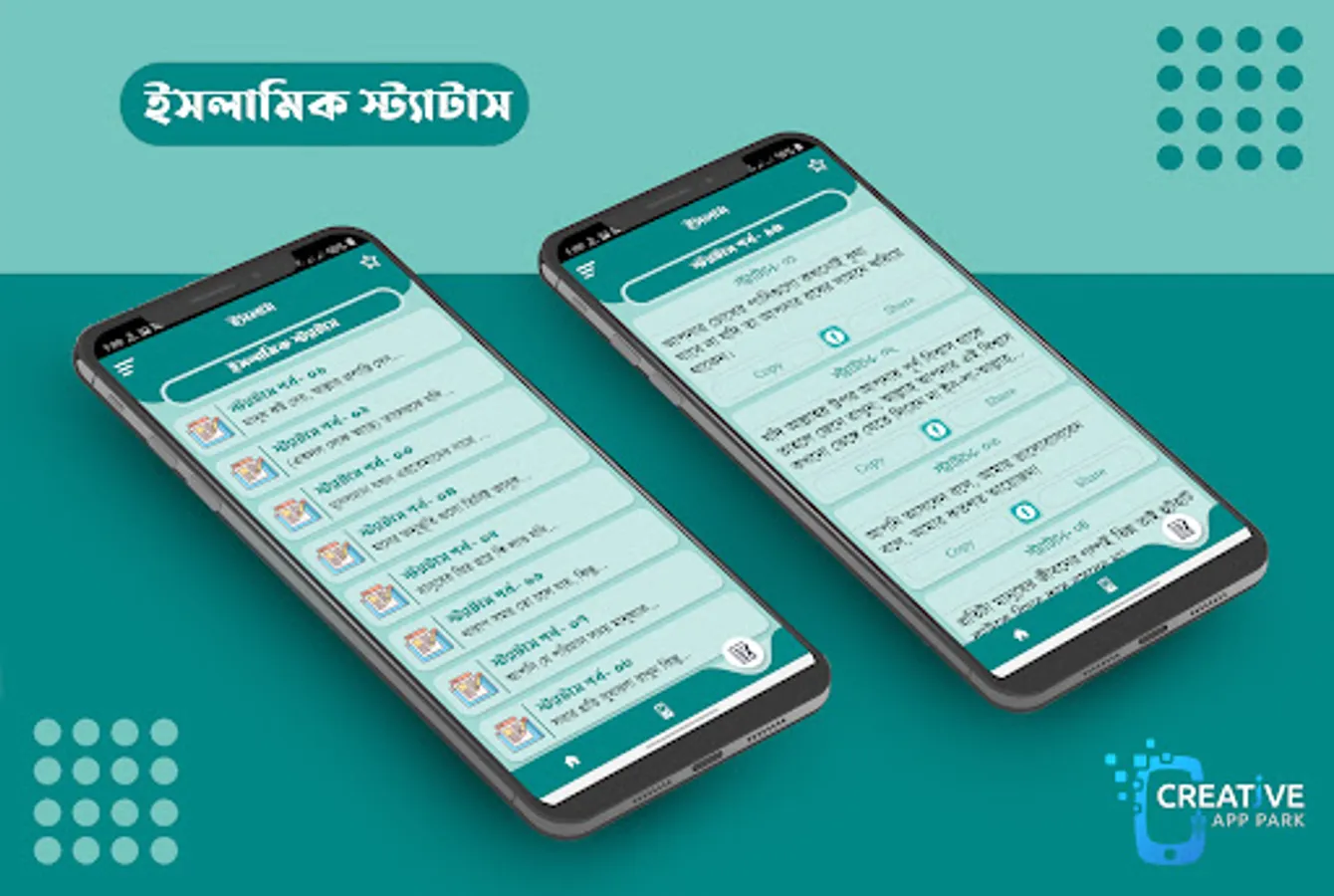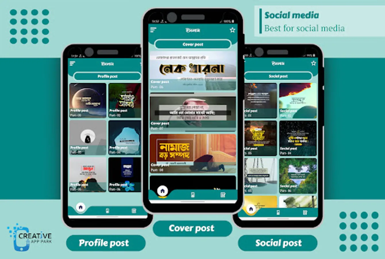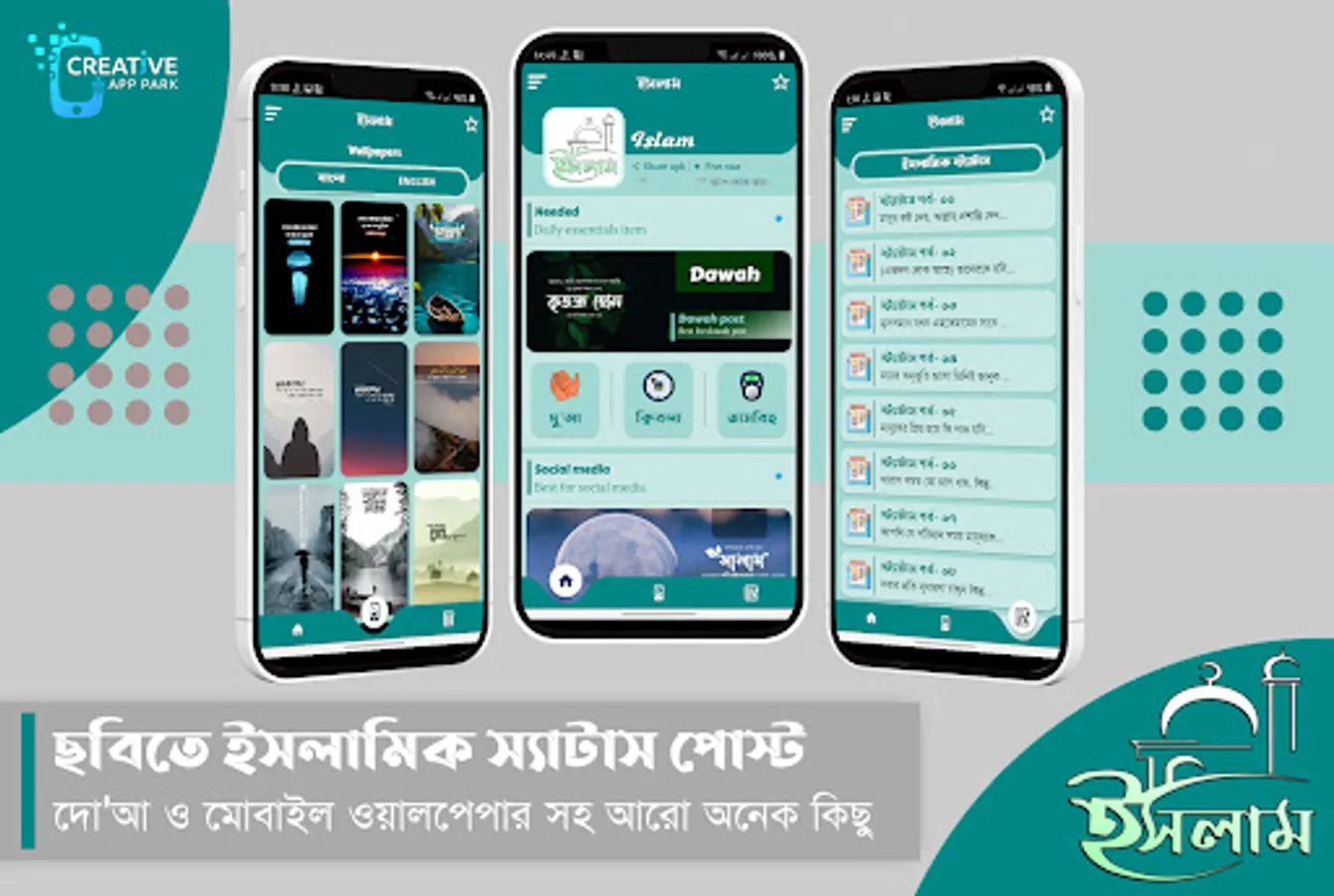 ইসলামিক পোস্ট ছবি সহ ইসলামিক স্ট্যাটাস এন্ড ওয়ালপেপার সহ আরো অনেক কিছু যুক্ত করে এবার এক ভিন্ন রকম আয়োজন নিয়ে হাজির হয়েছি আপনাদের জন্য। এখানে আপনারা ইসলামিক স্ট্যাটাস ছবি সহ ইসলামিক পোস্ট পাবেন যা আপনি বিভিন্ন সোশাল মিডিয়া গুলোতে ছবি সহ পোস্ট করতে পারবেন। ইসলামিক স্ট্যাটাস ছবি সহ ইসলামিক উক্তি সমূহ দলিল সহ ইসলামিক পোস্ট গুলো খুবি দৃষ্টিনন্দন এবং হালাল ডিজাইনে তৈরি করা হয়েছে। ইসলামিক উক্তি বা বিখ্যাত উক্তি বিভিন্ন হাদিস শরীফ এবং হাদিসের বই থেকে নিয়ে বাছাই করে স্ট্যাটাস পোস্ট আকারে তুলে ধরেছি। ইসলামিক বই এবং ইসলামিক গল্পের বই সহ বিভিন্ন ইসলামিক উপন্যাস বই গুলো থেকে বিষেশ কিছু ইসলামিক উক্তি আর ইসলামিক উপদেশ মূলক কথা ইসলামিক পোস্ট আঁকারে দেওয়া আছে যা থেকে আপনি যে কাউকে ইসলামিক এসএমএস শেয়ার করা সহ বিভিন্ন সোশ্যাল মিডিয়াগুলোতে ইসলামিক স্ট্যাটাস ছবি সহ ইসলামিক পোস্ট করতে পারবেন। ইসলামিক দাওয়াতি কাজে অনেকেই প্রিয়জনদের কাছে অথবা social media গুলোতে ইসলামিক স্ট্যাটাস পোস্ট শেয়ার করে থাকেন। islamic status app এ থাকা পোষ্ট গুলো আপনি ইসলামিক এসএমএস বাংলা তে যে কাউকে এস এম এস পাঠাতে পারবেন খুব সহজেই। ইসলামিক মনীষীদের ছোট ছোট উপদেশ বাণী নিয়ে ইসলামি টাইপোগ্রাফি অ্যাপ বাংলা তৈরি করা হয়েছে, এখান থেকে আপনি বাছাই করে সুন্দর সুন্দর ইসলামিক পোস্ট ফেসবুক ছবি সহ স্ট্যাটাস দিতে পারবেন।
