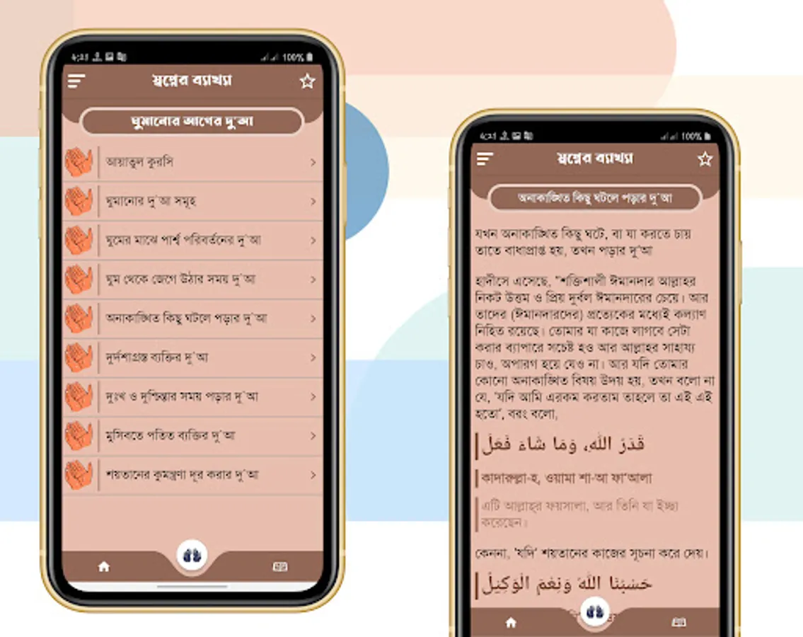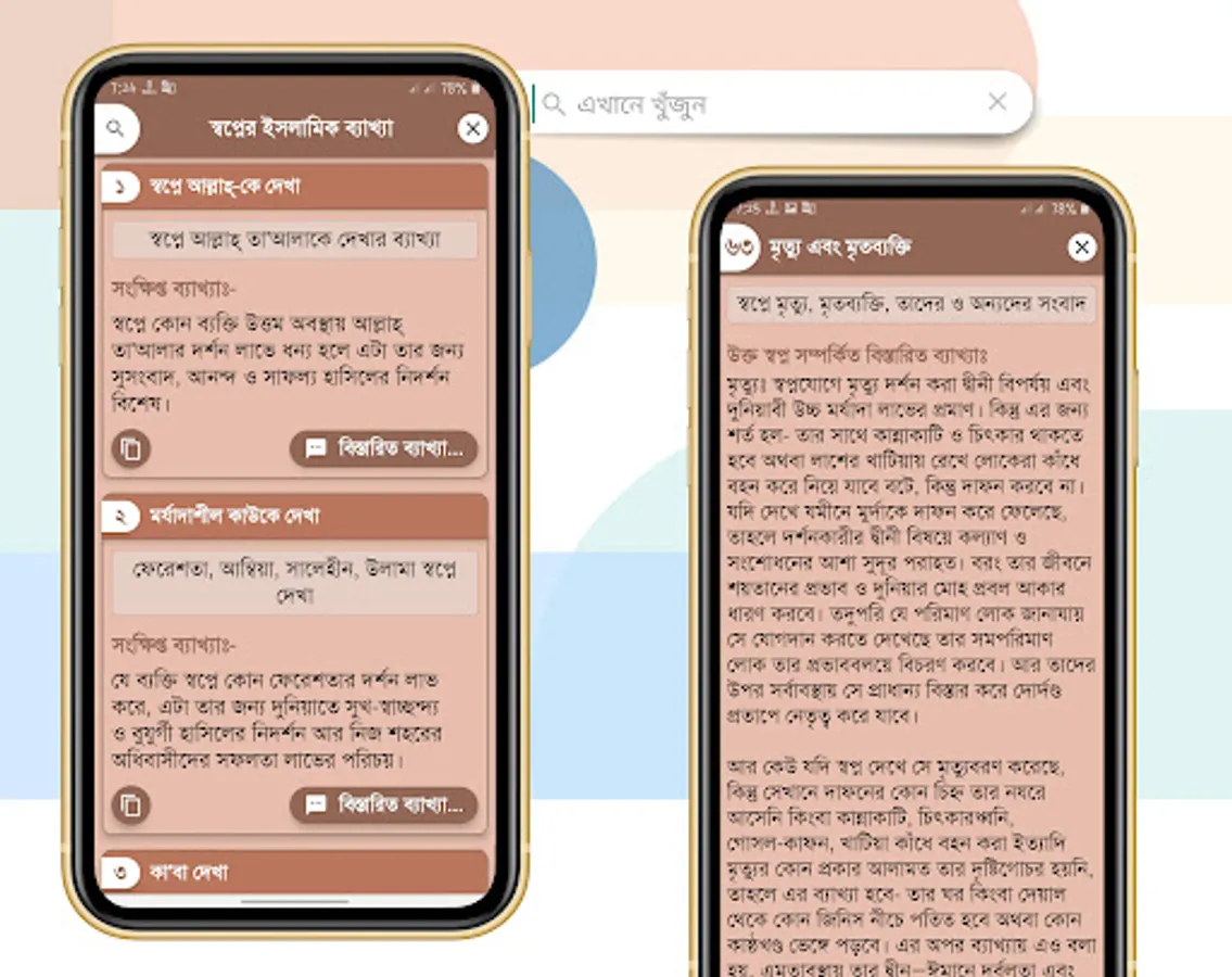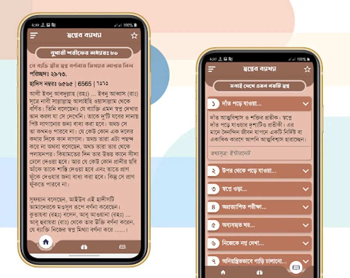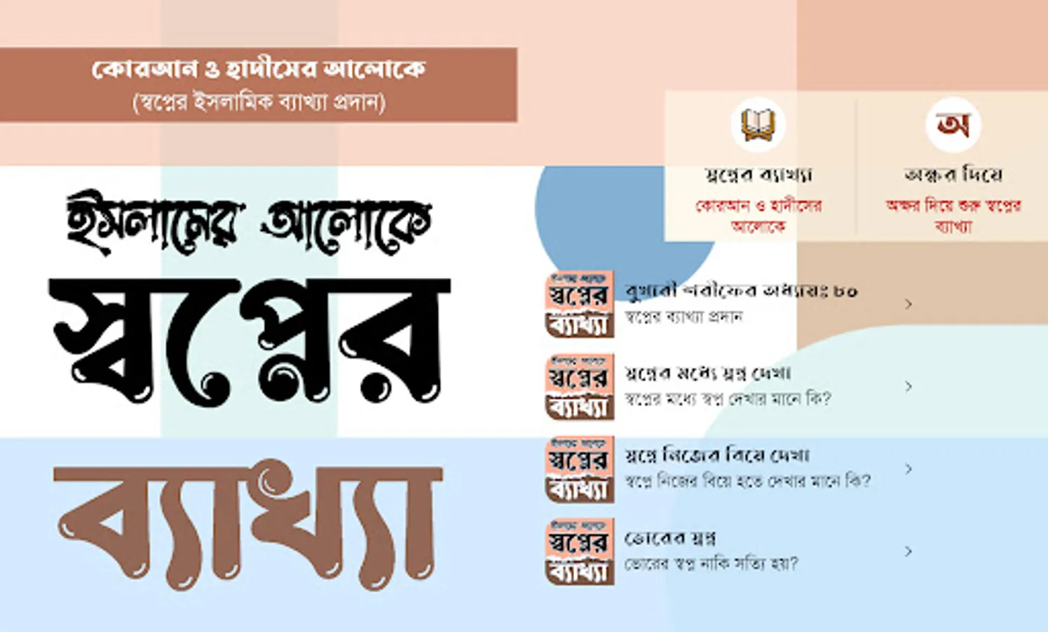 হযরত ইসমাইল (আ.) এর কুরবানীর ঘটনা ও Shopner bekkha হচ্ছে ইসলাম ধর্মে সবচেয়ে বড় ও বহুল প্রচলিত ঘটনা। এছাড়াও Shopner tabir নিয়ে ছোট বড় আরো অনেক স্বপ্নের ঘটনা রয়েছে যেমন- হযরত ইউসুফ (আঃ) স্বপ্নের ব্যাখ্যা। আজকে আমরা Shopner bekkha bangla app দ্বরা জানতে পারবো স্বপ্নে কি দেখলে কি হয়। কোরআন ও হাদিস এর আলোকে ইসলামের দৃষ্টিতে স্বপ্নের ব্যাখ্যা কি হয় সে সকল Sopner bekkha banglay সুন্দর ভাবে তুলে ধরেছি আমাদের এই shopner app টিতে।