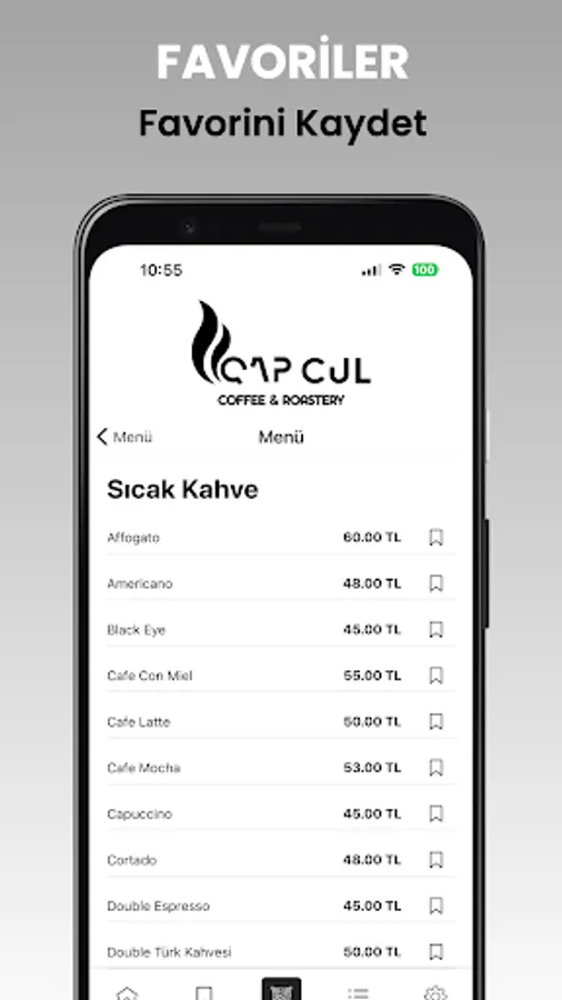 Prepare the QR code every time you drink coffee, show it to the authorized person at the cash register, earn points. One free coffee for every 10 points. You can also access our menu from anywhere. Add your favorite coffee to your favourites!