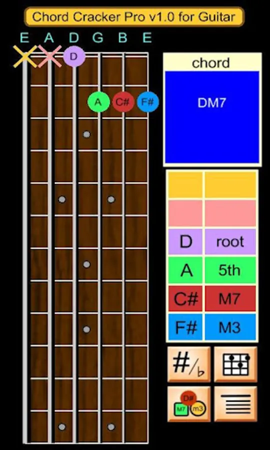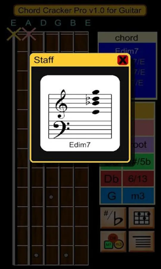 Simply the best assistant for understanding, exploring, and composing on guitar. Place dots on the neck to instantly identify the notes, interpret the chords, and show the relationships between the notes. Complete chord charts with 70 different chord types. Listen to chords as you explore. View chords on a musical staff, chord diagram, or tab. Works for any tuning! Easy to use and explore.