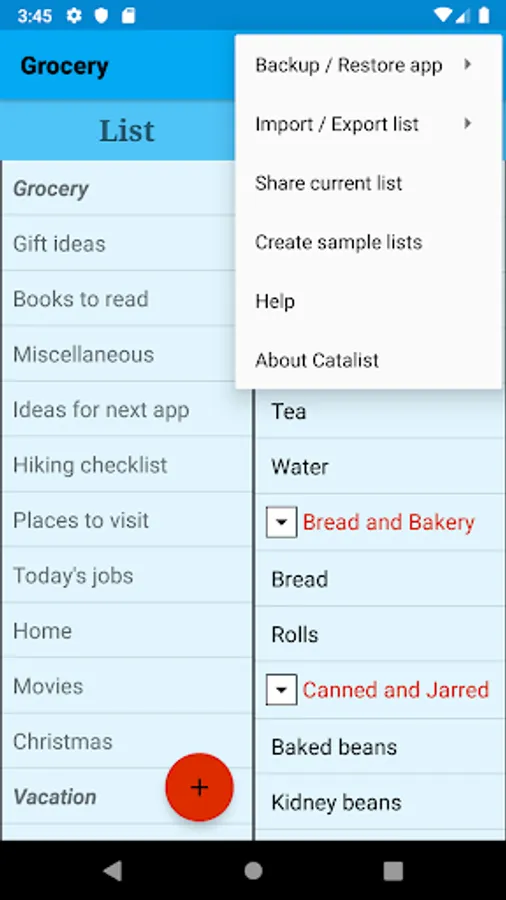 You can create a basic list, which is good for a one-time list (weekend chores for example). Or if you want to re-use and modify your list, create an advanced list (great for shopping). Catalist contains no ads.
