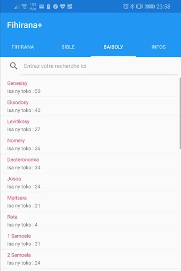You will also find the Bible in Malagasy and French (Version Louis Segond 21)