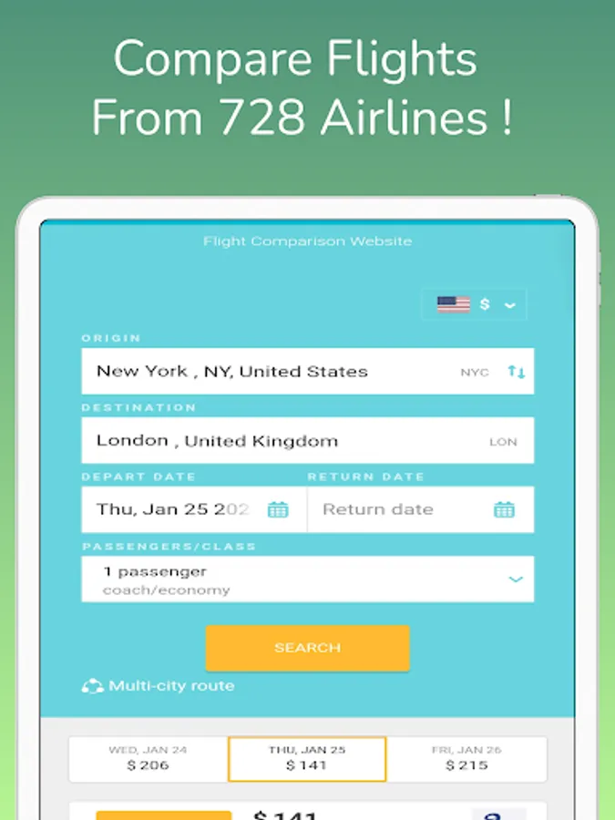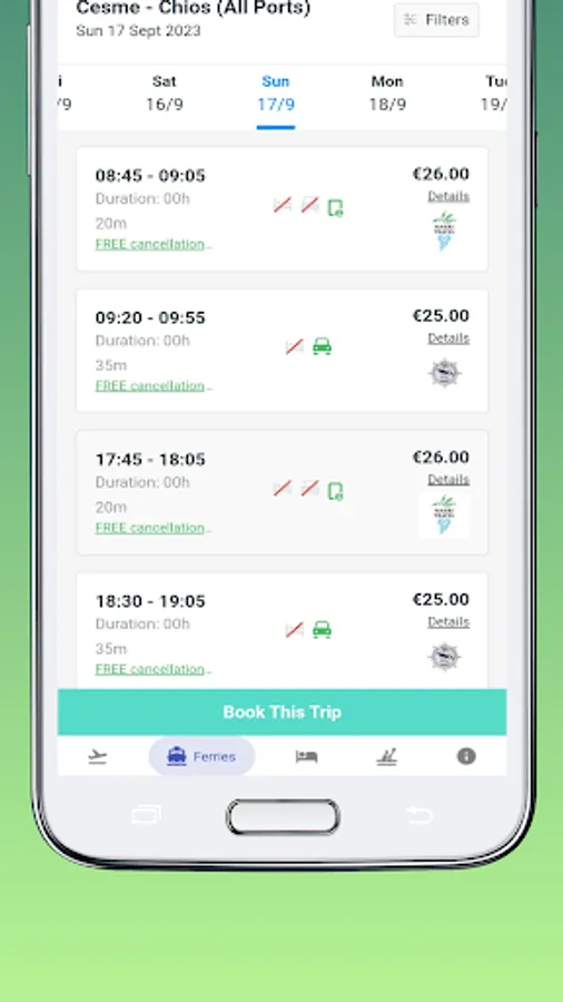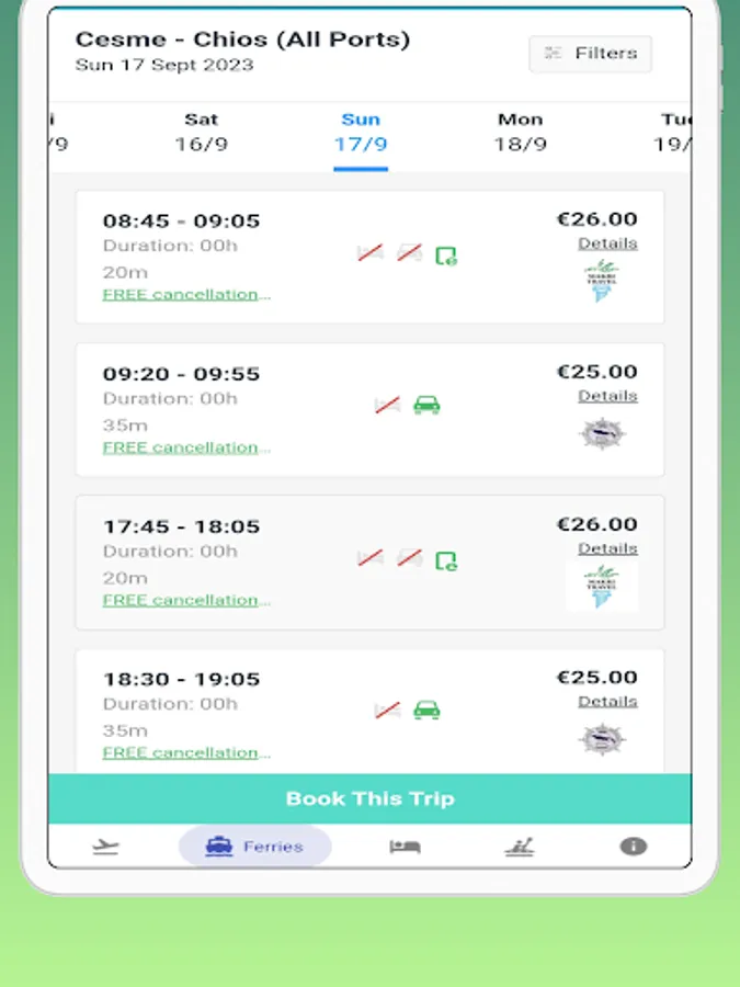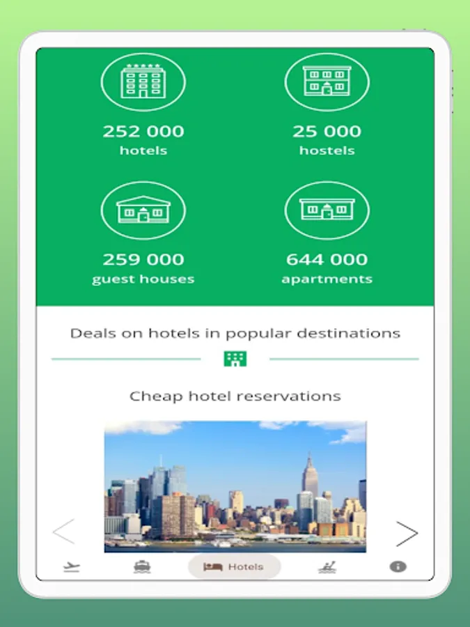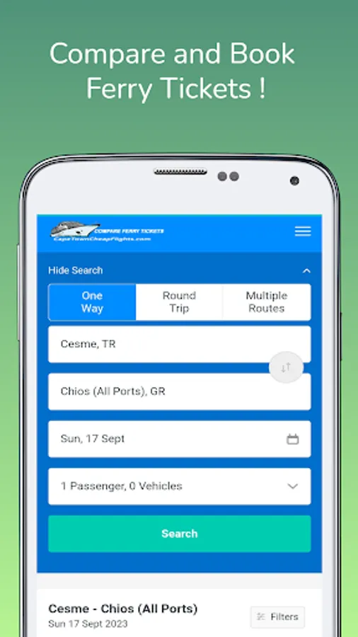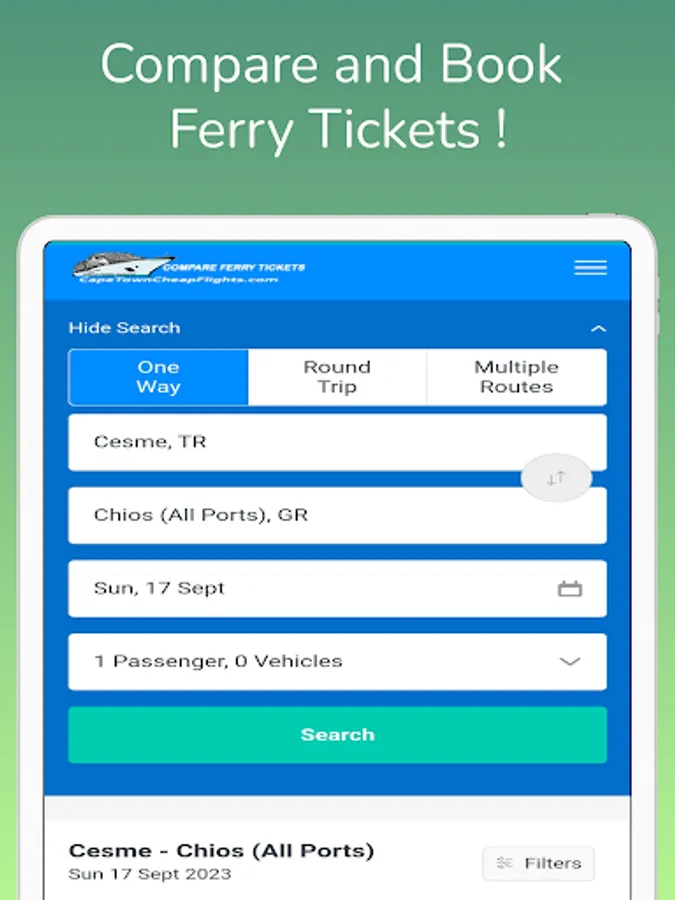 Cheap flights ferries hotels app allows you to compare flights, ferry tickets, and hotels around the world.