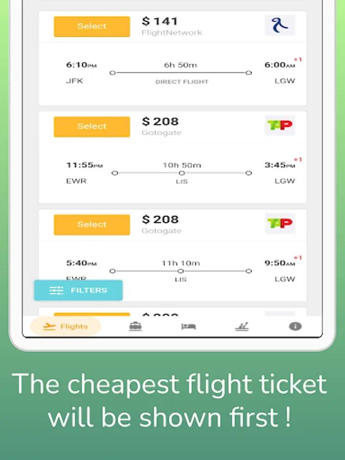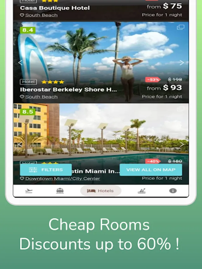 Download cheap flights ferries hotels app to compare, and find the lowest ticket price quickly and easily for many travel services such as Flights, Ferries, Hotels, Hostels, Accommodations, Vacation Packages, tours & activities, and save much more!