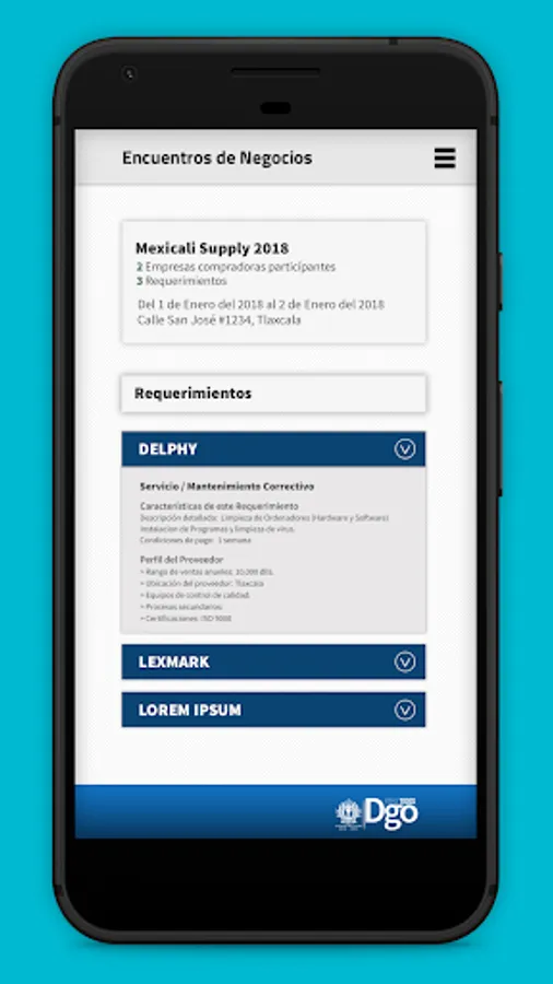 DGOCOMPETITIVO is a free application that offers users an easy and fast way to search for leading suppliers in the state of Durango.