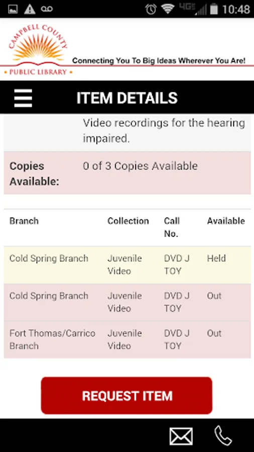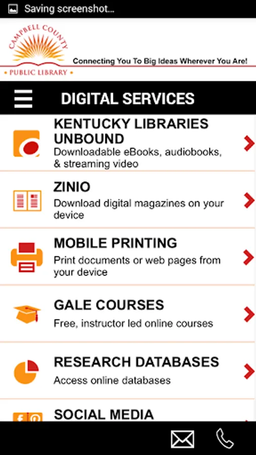 The Campbell County Public Library is now available as an app for your tablet or smartphone. This app is the quickest, easiest way to search for items, register for programs and learn about our services.