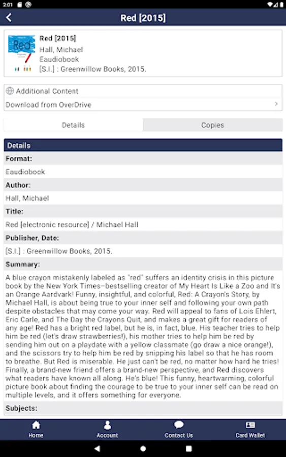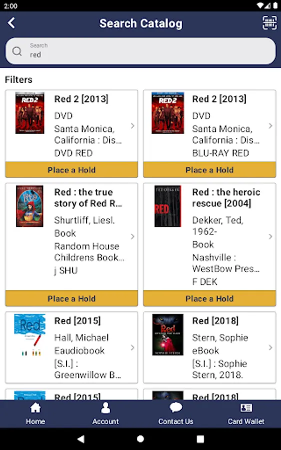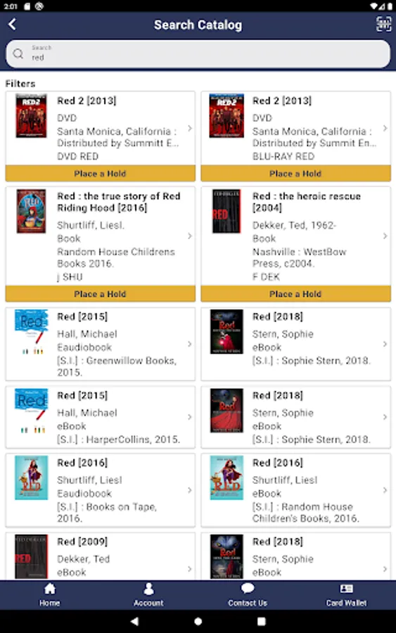 -Add one or more library accounts to your device, allowing you to manage holds, checkouts, and more