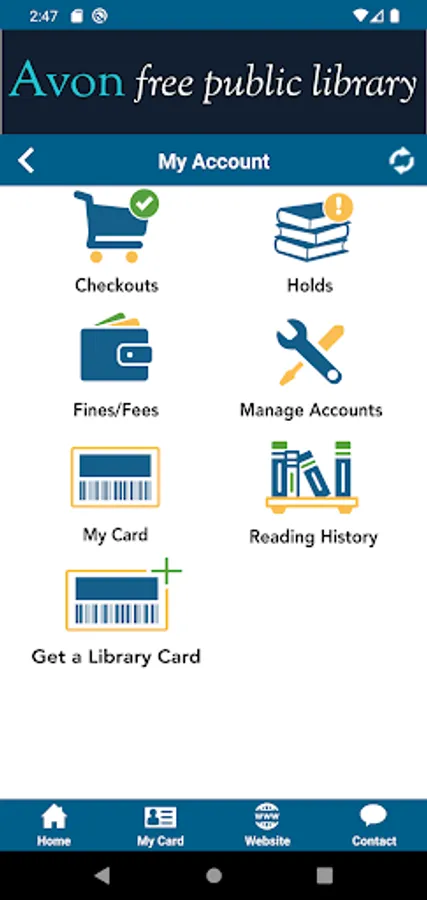 -Add one or more library accounts to your device, allowing you to manage holds, checkouts, and more