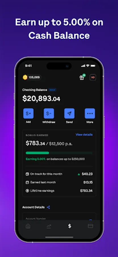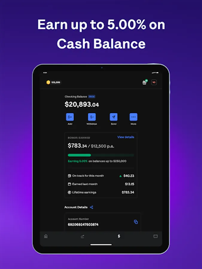 1. Earn 5% on cash deposits up to $50,000 and 4% up to $250,000.