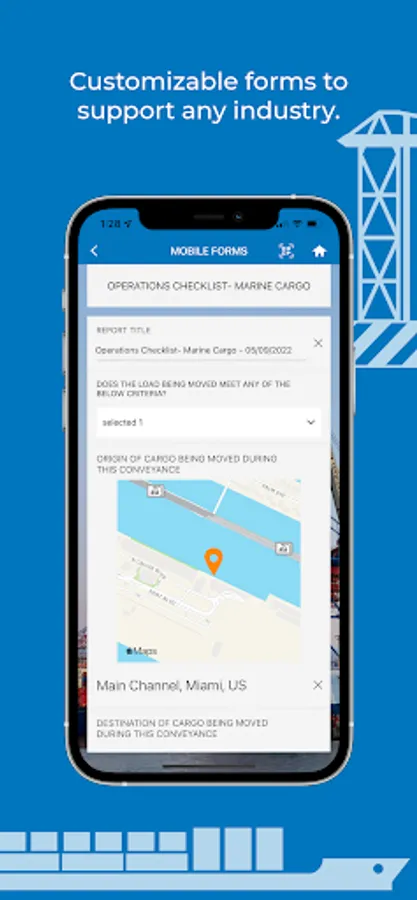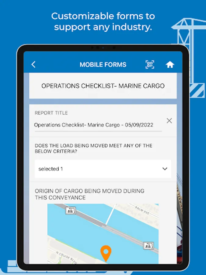 MOBILE FORMS WITH QR CODE ACCESS – Replace paper-based forms with digital forms that can be completed by anyone with the app or via QR code access. Leverage our pre-populated form library or build new based on your existing paper forms. Data is captured digitally, directly from the user, reducing errors and providing faster access to information. Mobile forms can cover a wide variety of topics, warehouse assessments, carrier scorecards, heavy lift and project cargo management, and cargo theft management.