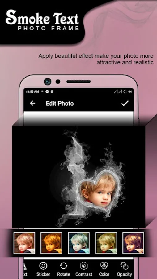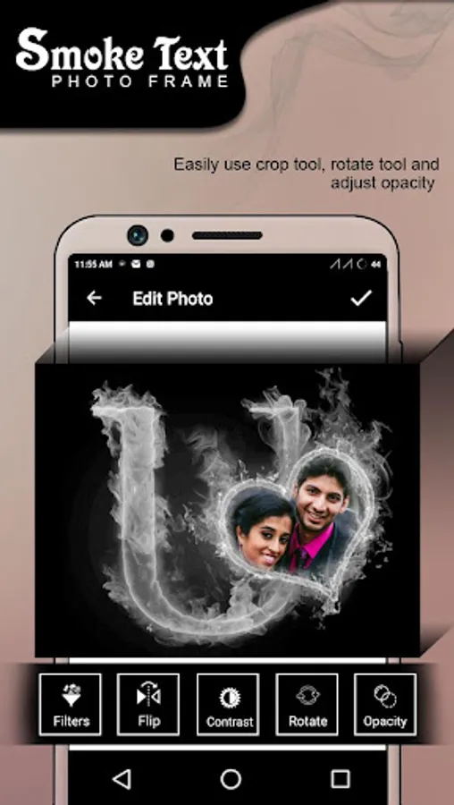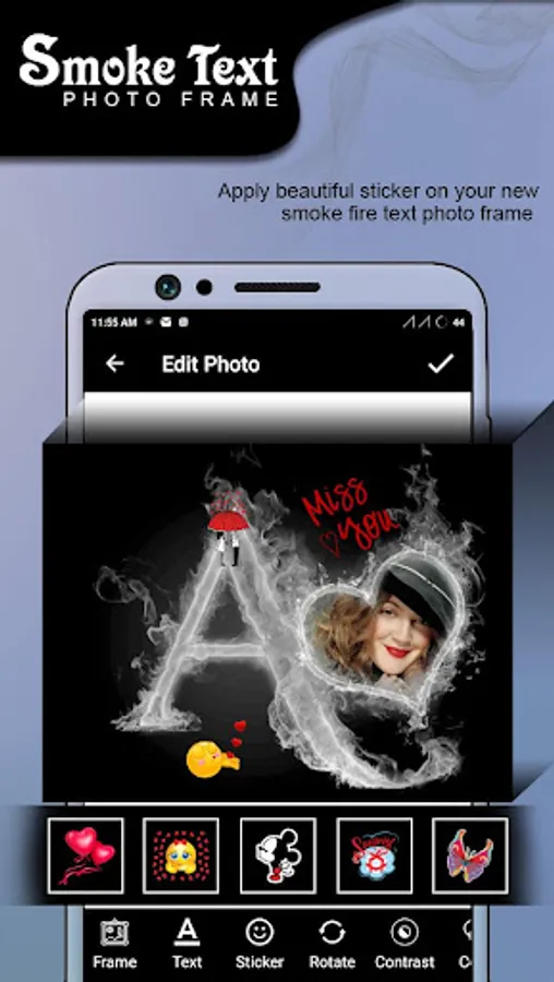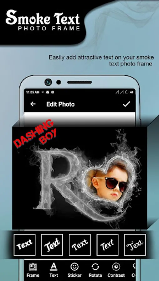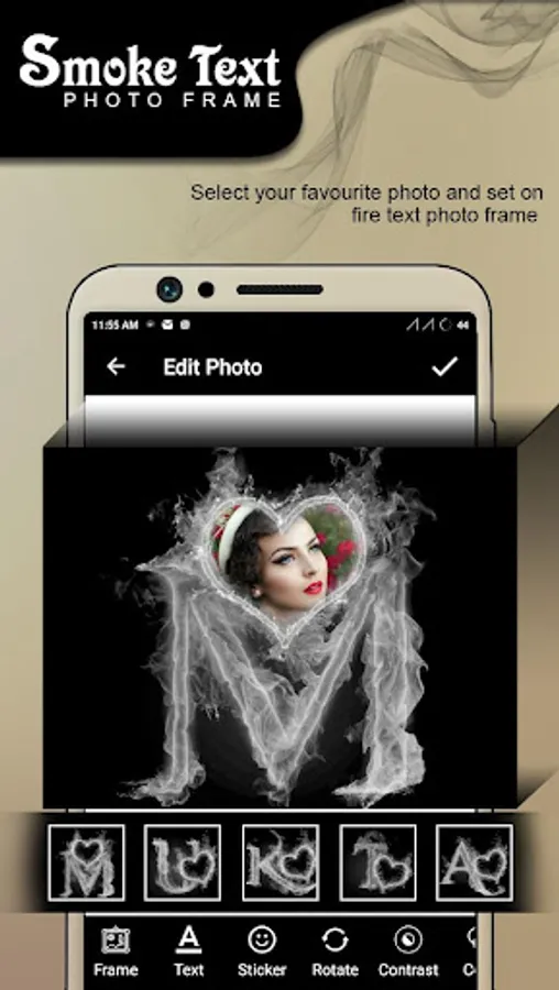 - Rotate, scale, zoom in, zoom out or drag the photo to fit the “Smoke Text Photo Frame" as you like!
