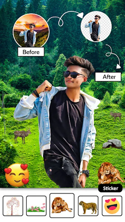 Nature Cutout Photo Editor provides a fast and easy way to create amazing custom pictures. Just touch the area of picture which you want to erase and cutout photo editor will automatically detect the entire area through color detection AI and it will erase that area for you so that you can paste that image on any other picture or on our existing 1000+ HD backgrounds.