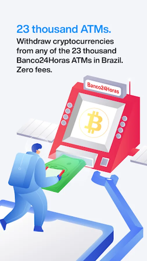 Without paying any fees: Make withdrawals directly from your cryptocurrency wallets from any of the 23 thousand Banco24Horas ATMs in Brazil.