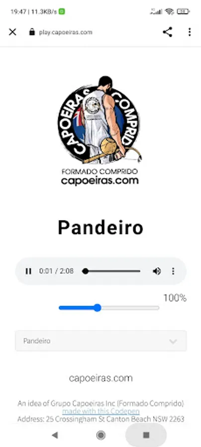 Capoeira Instrument Loop Player - Grupo Capoeiras Inc (Formado Comprido) allows you to play capoeira instruments in loop to practise your toques.