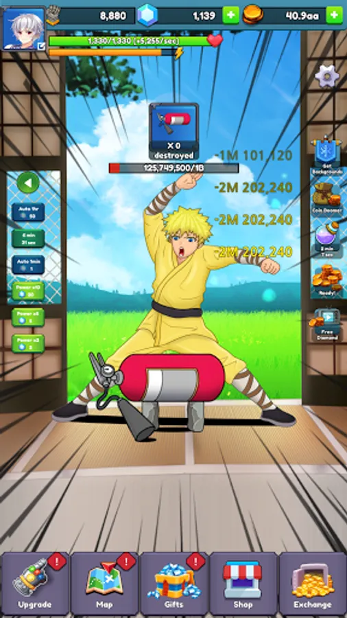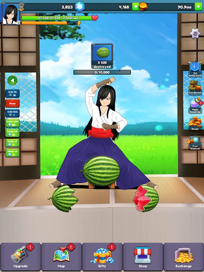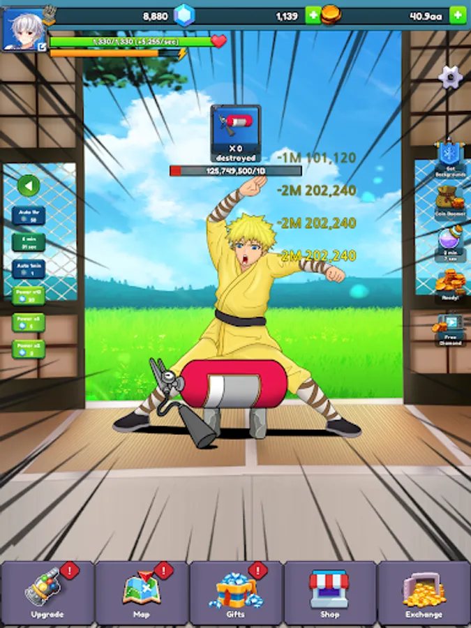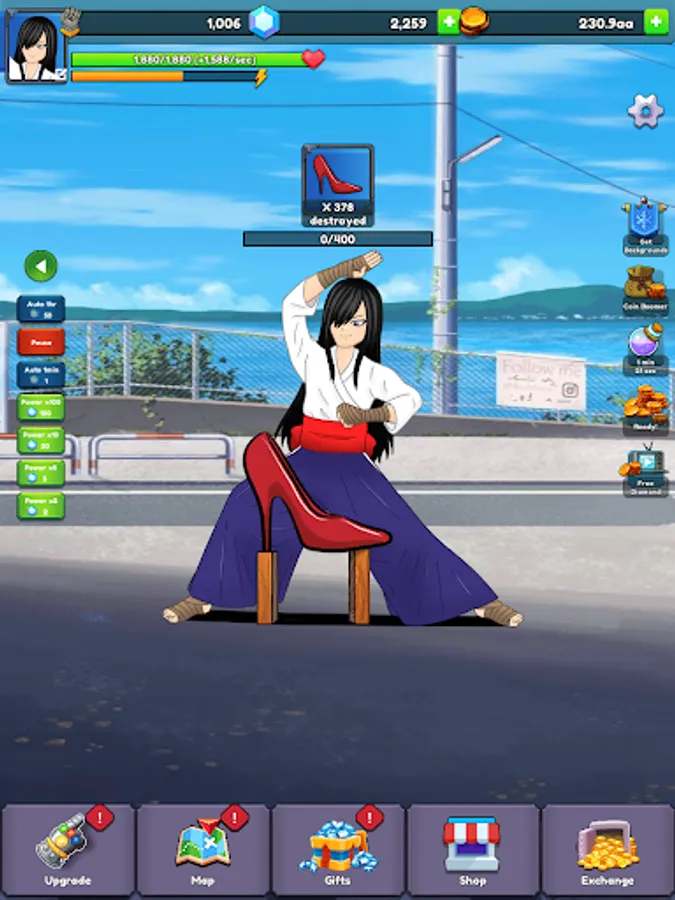 Use your gold to improve hand power, health, speed and hero power of your anime character,
