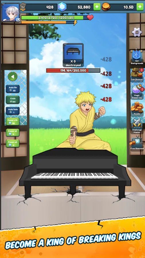 Hero Yukichi and Hana wants to conquer all territories in three islands and the hero has to break everything in islands; Asuka, Nara and Heian. Each master has prepared items to break for his challenge. If you want to be a king, you need to master your tapping skills in this casual clicker simulation!