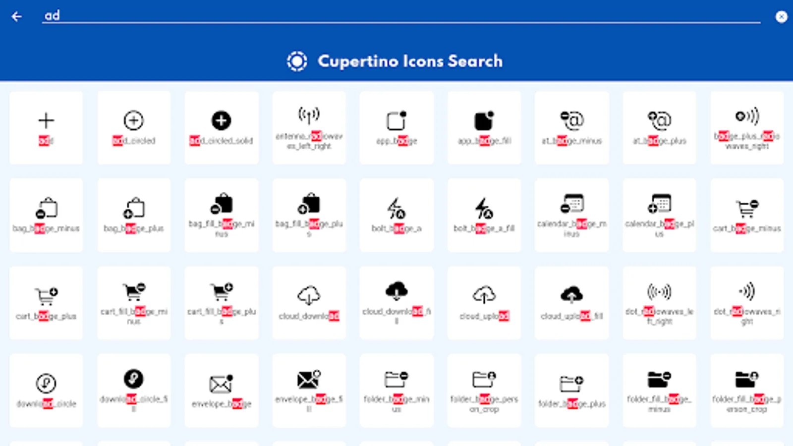 The Cupertino Icons Gallery is also Free and Open Source. The app is built 100% in Flutter (https://flutter.dev) and its source code is available on Github (https://github.com/capps096github/cupertino_icons_gallery). Feel free to clone, fork, star and use it in your projects and above all contribute to it. Thanks.