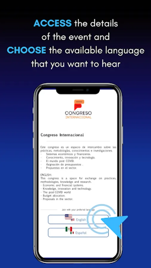 It is only necessary to scan the QR code provided by the event organizer to access the details and choose the available language of your choice.