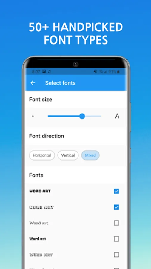 - Of course, you can use various unique fonts at the same time, and you can also change the font size and writing direction.
