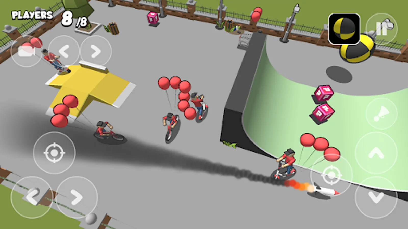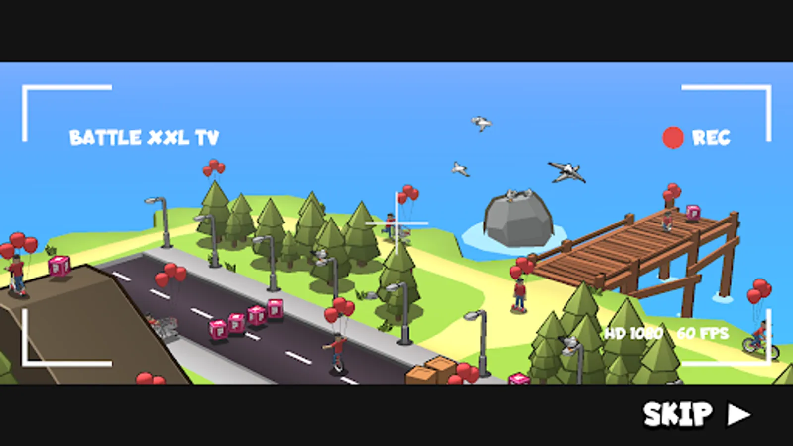 Welcome to BATTLE XXL, a classical party battle game featured by freaky vehicles. Collect power-ups and destroy as many balloons and players as possible before getting destroyed. Various game modes like Battle, Mega Ramp and Free Roam will bring endless fun. Can you defeat all opponents?