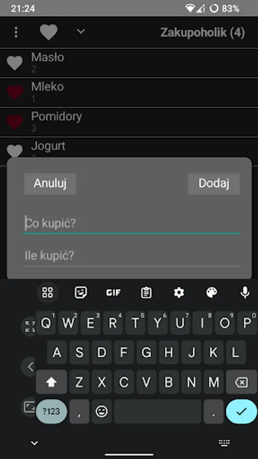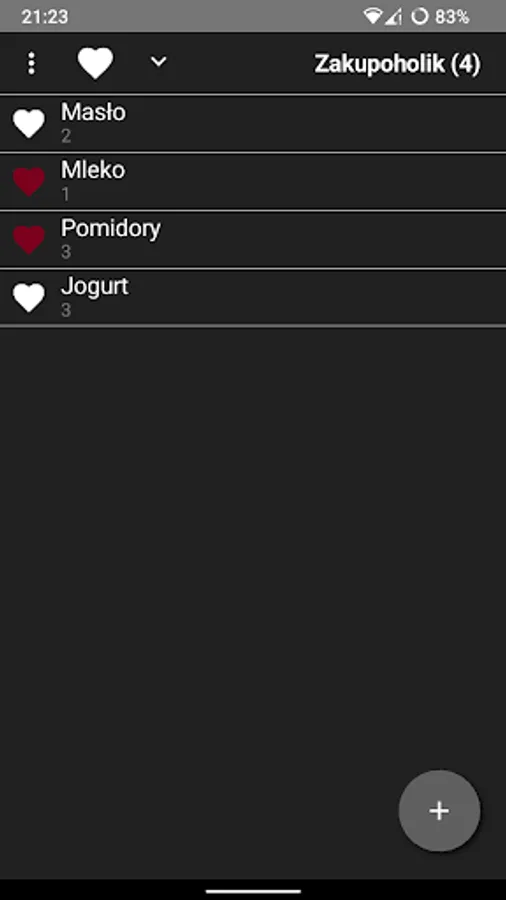 Simple shopping list: name and quantity, purchased, removing from list, filtering by name, support for favorites and filtering marked as purchased, dark mode support. Can be used as a list of any other items ;)