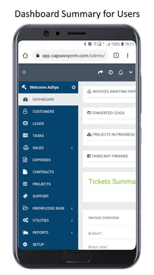 CapSavvy CRM comprises of 12 modules for smooth running of all your business operations. These include; (1) Leads Management, (2) Sales Management, (3) Customer Management, (4) Project Management, (5) Tasks Management, (6) Expenses Management, (7) Contracts Management, (8) Support Management (9) Payment Collection, (10) Surveys Management, (11) Calendar management and (12) Knowledge Base.