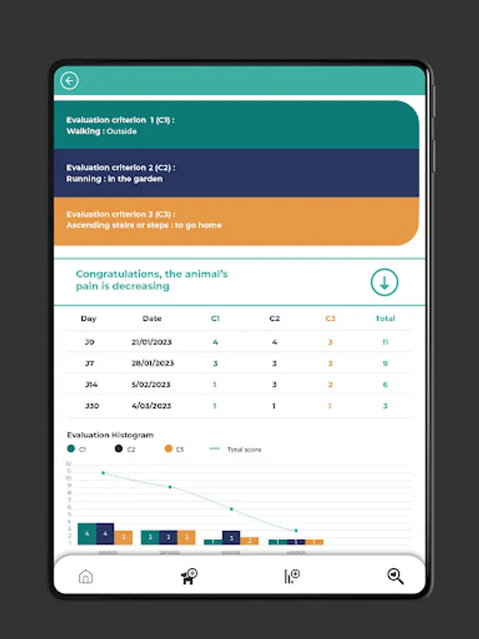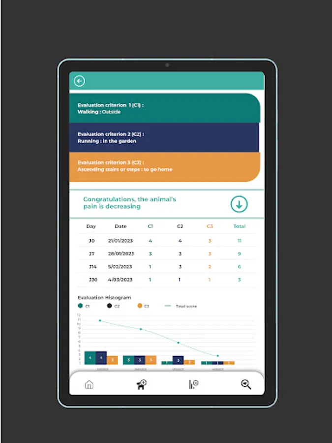 CAPscoring enables you to assess your dog's or cat's pain from home, thereby streamlining veterinary monitoring. As a pet owner, track their well-being and share data with your vet for tailored care. For partnering veterinarians, CAPscoring provides a comprehensive tool to evaluate, track, and manage pain in your patients, offering practical and professional resources.
