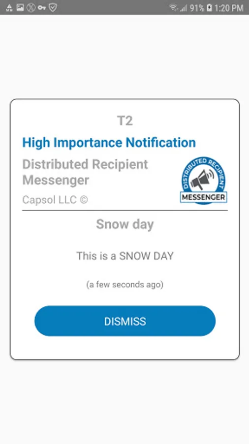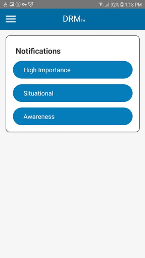 The app is designed to be used as a messaging tool for a customer, employer, or an organization to communicate with their employees, staff, members, or clientele. Only authorized DRM administrators have the authority to send messages via event codes to subscribers. The authorized DRM administrator has the option of selecting one or multiple event codes to send a message to multiple groups at once, at one of three levels of alerting:
