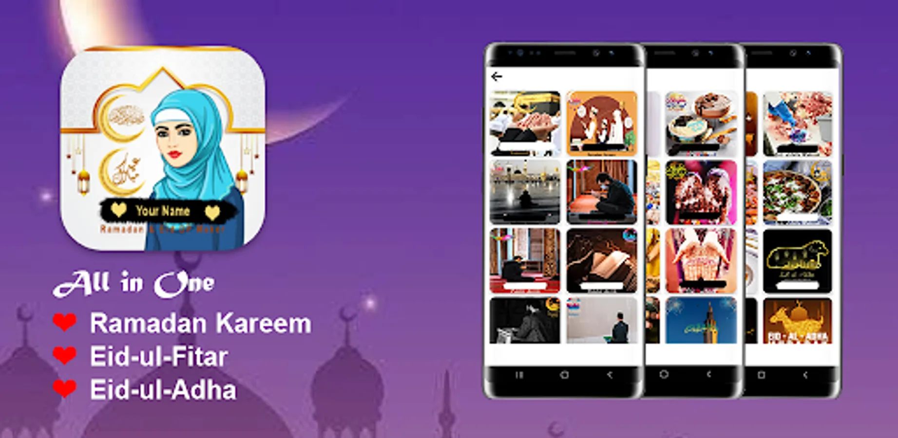 Ramadan DP Maker Eid Name DP Maker : contains multiple and stylish frames , stylish fonts, colourful backgrounds in which you can set your own name with stylish fonts and make your eid Mubarak dp for your contacts. It is a best app to set your profile for Ramadan Mubarak name Dp maker and eid Mubarak name Dp maker.