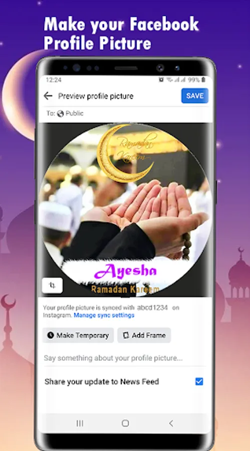 Ramadan & Eid DP Maker gives ease to make Ramadan Mubarak Dp and Eid Dp with your stylish name. This app have multiple options for designing name dp with Ramzan mubarak photo frames and eid mubarak photo frames.