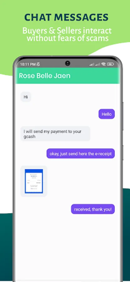 The mobile app requires a photo of the product, title, description and price to be posted. It has a chat feature where buyers and sellers can communicate concerns about the ordered product. The system has a notification feature that lets the users know about product updates and if there is a new message on the chat.